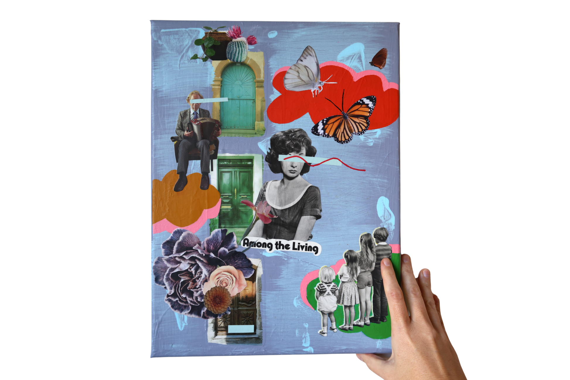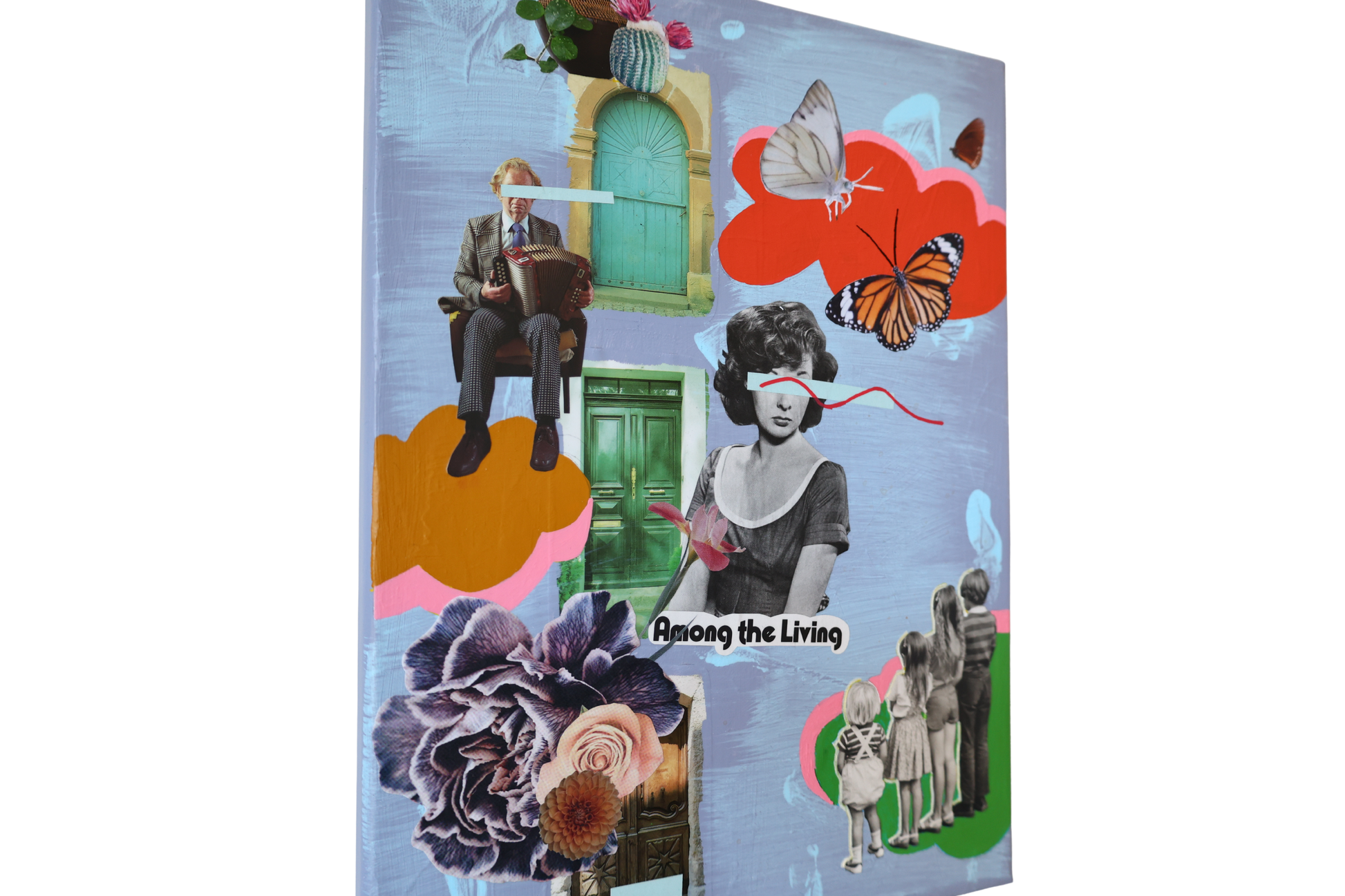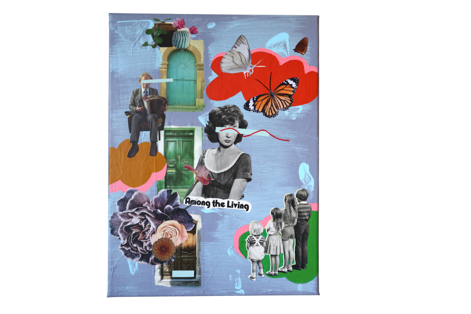 With the theme of clouds carried through this collection, this piece is no different. The clouds represent a heavenly plan. With three doors symbolizing Father, Spirit and Son remaining the same through each generation. The groupings of flowers and butterflies are each themes alos carried through the collection symbolizing hope and trust for the future. We are 'among the living' because He lives in us and gives us a heavenly purpose. This piece could be passed down through the generations because He remains the same.