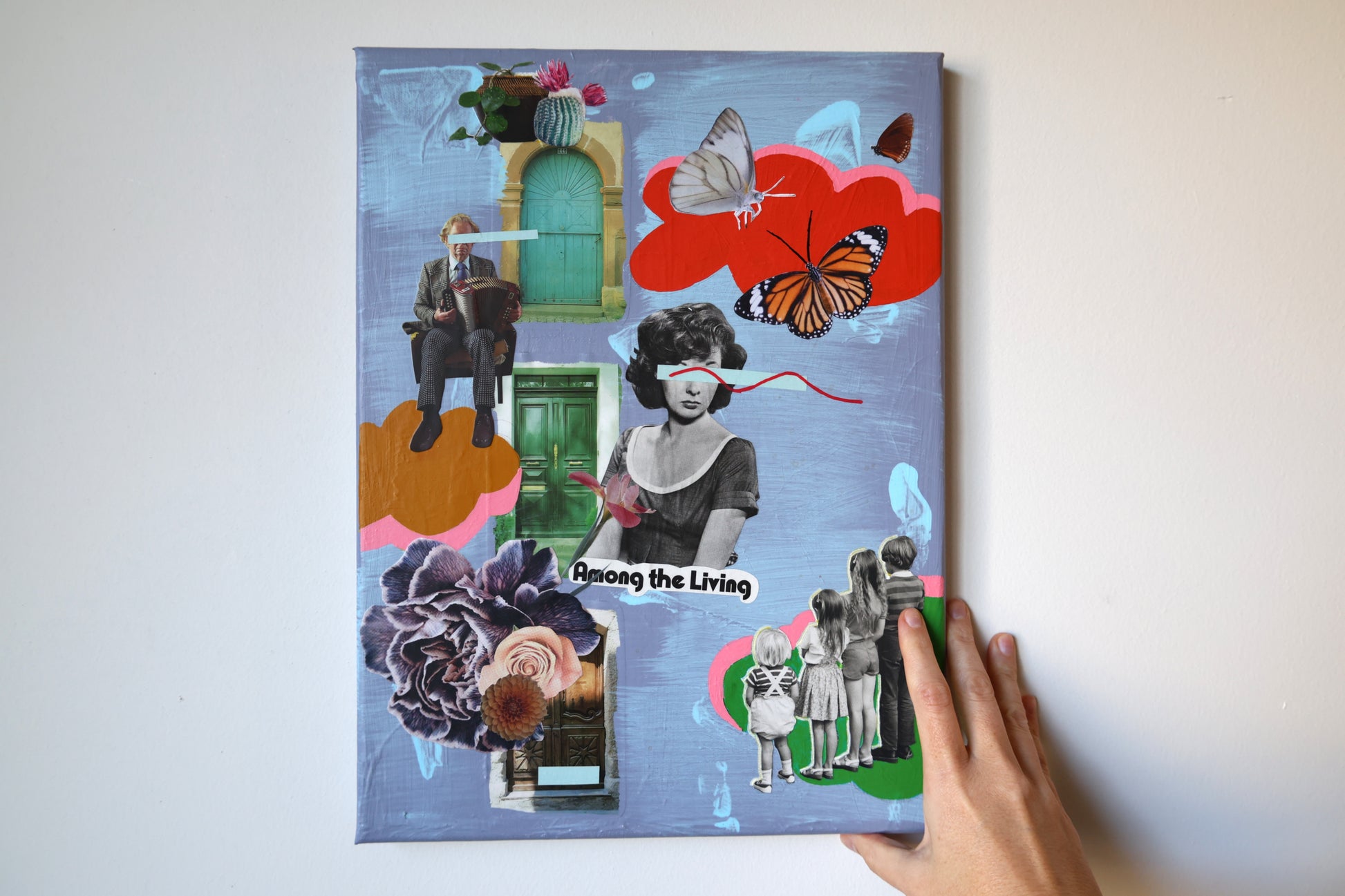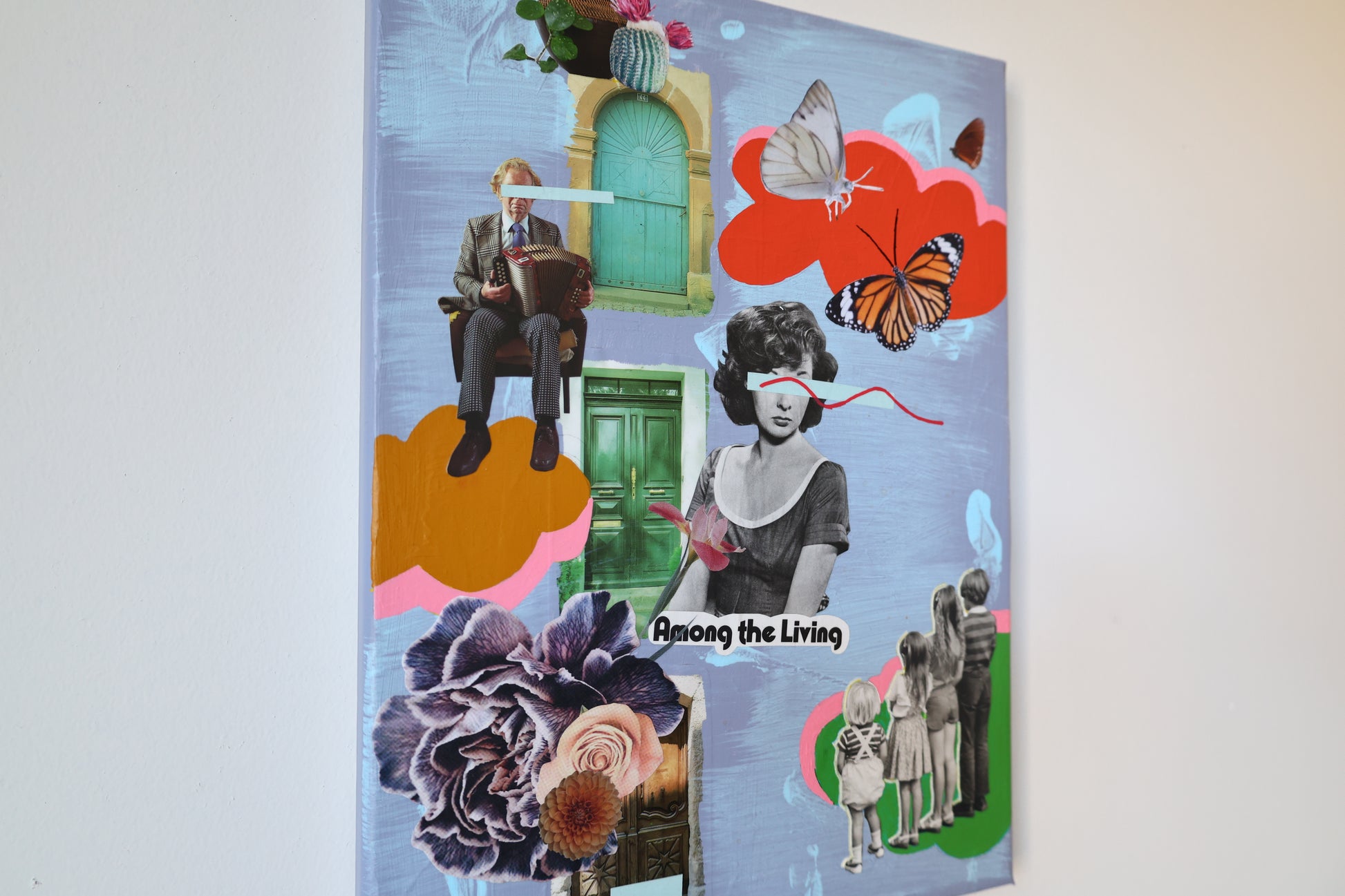 With the theme of clouds carried through this collection, this piece is no different. The clouds represent a heavenly plan. With three doors symbolizing Father, Son and Spirit remaining the same through each generation. The groupings of flowers and butterflies are each themes also carried throughout the collection symbolizing hope and trust for the future. We are 'among the living' because He lives is us, even in this world, but with heavenly purpose. This piece could be passed down through generations because He remains the same.
