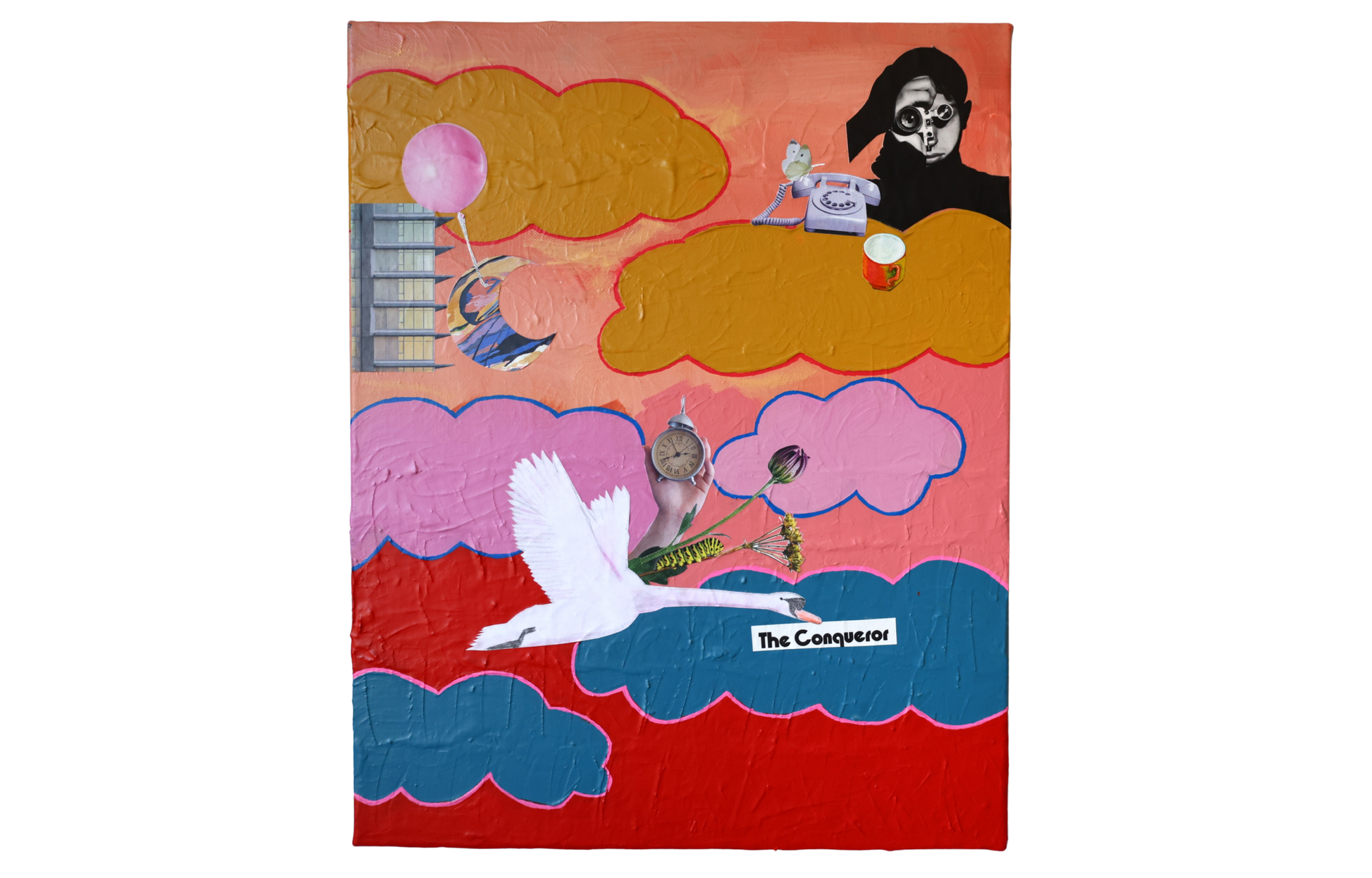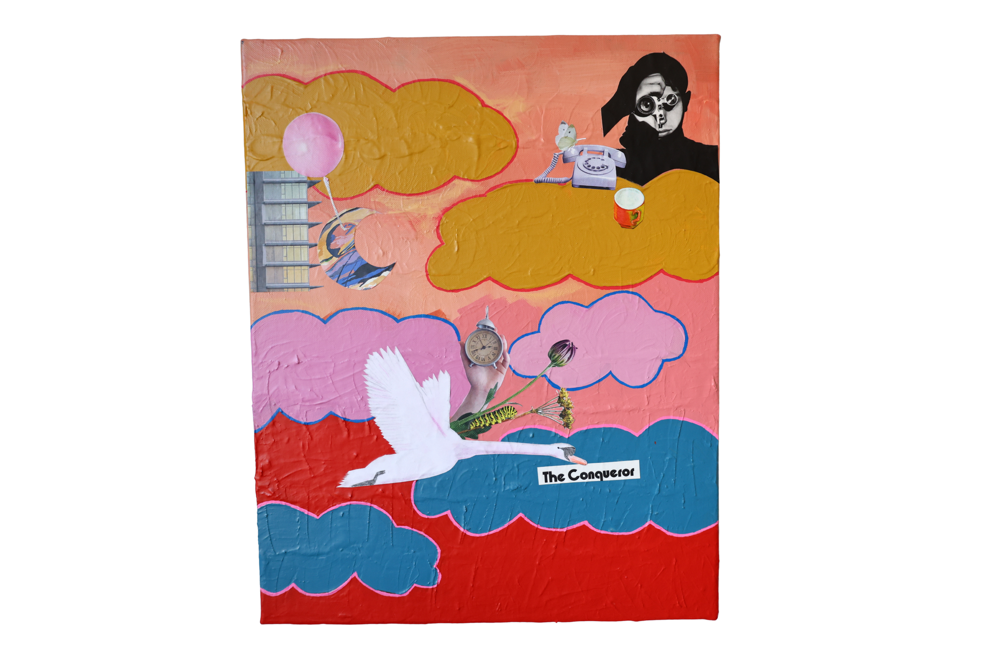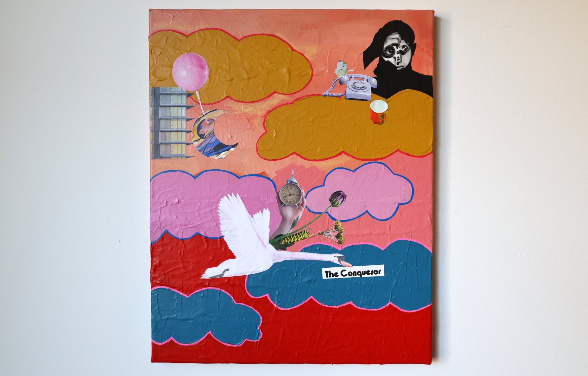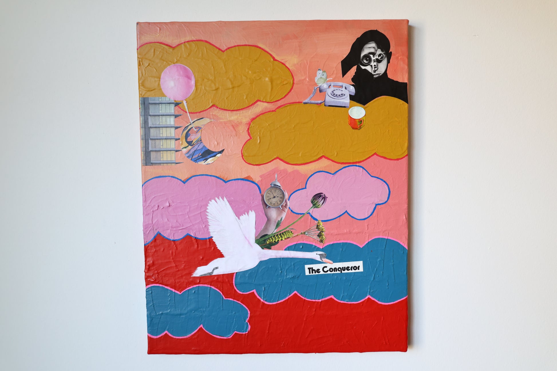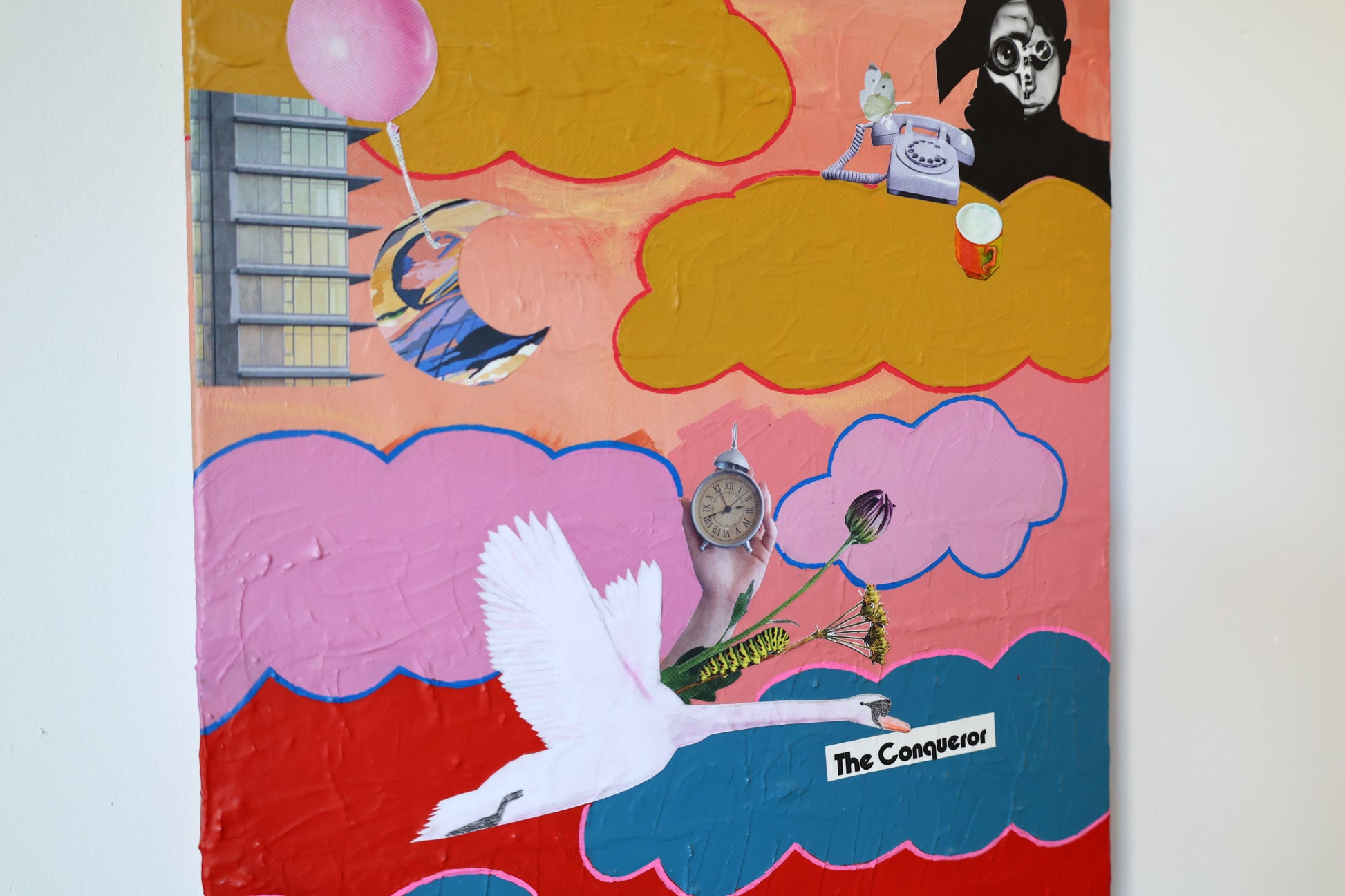 This image became the anchoring point for His Kingdom Come. With vividly painted clouds soaring in a sky of peachy corals, flies the swan carrying the sign of the Conqueror. He is coming back! His Kingdom will come in His perfect timing. He sees all, hears all and will work all things together for our good and His glory. Our Lord has a plan and will bring it to completion.