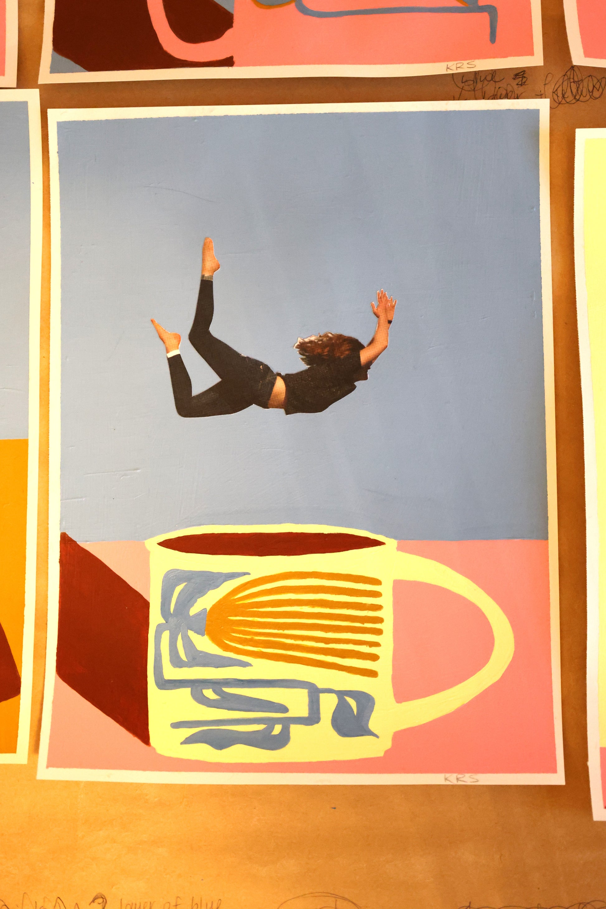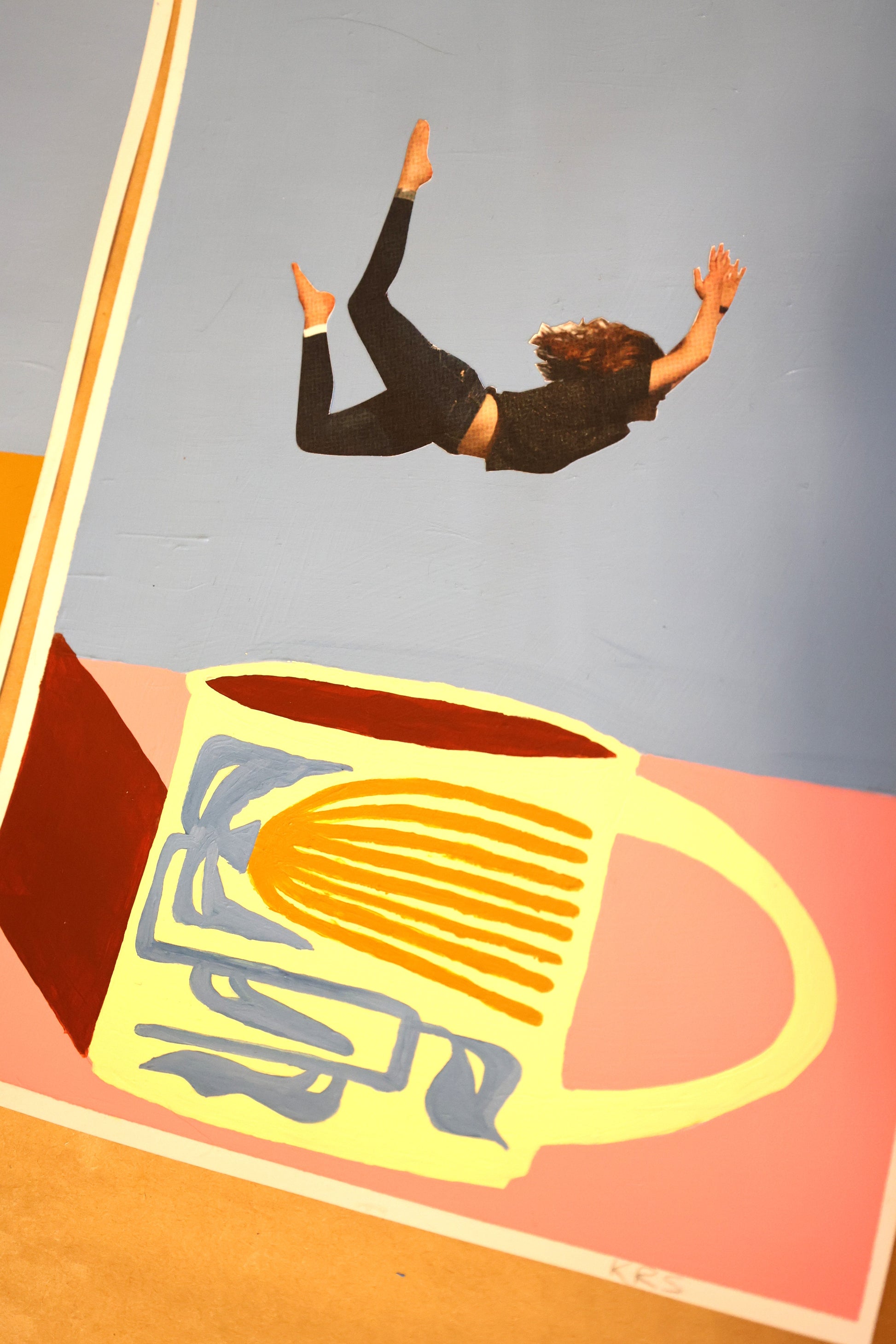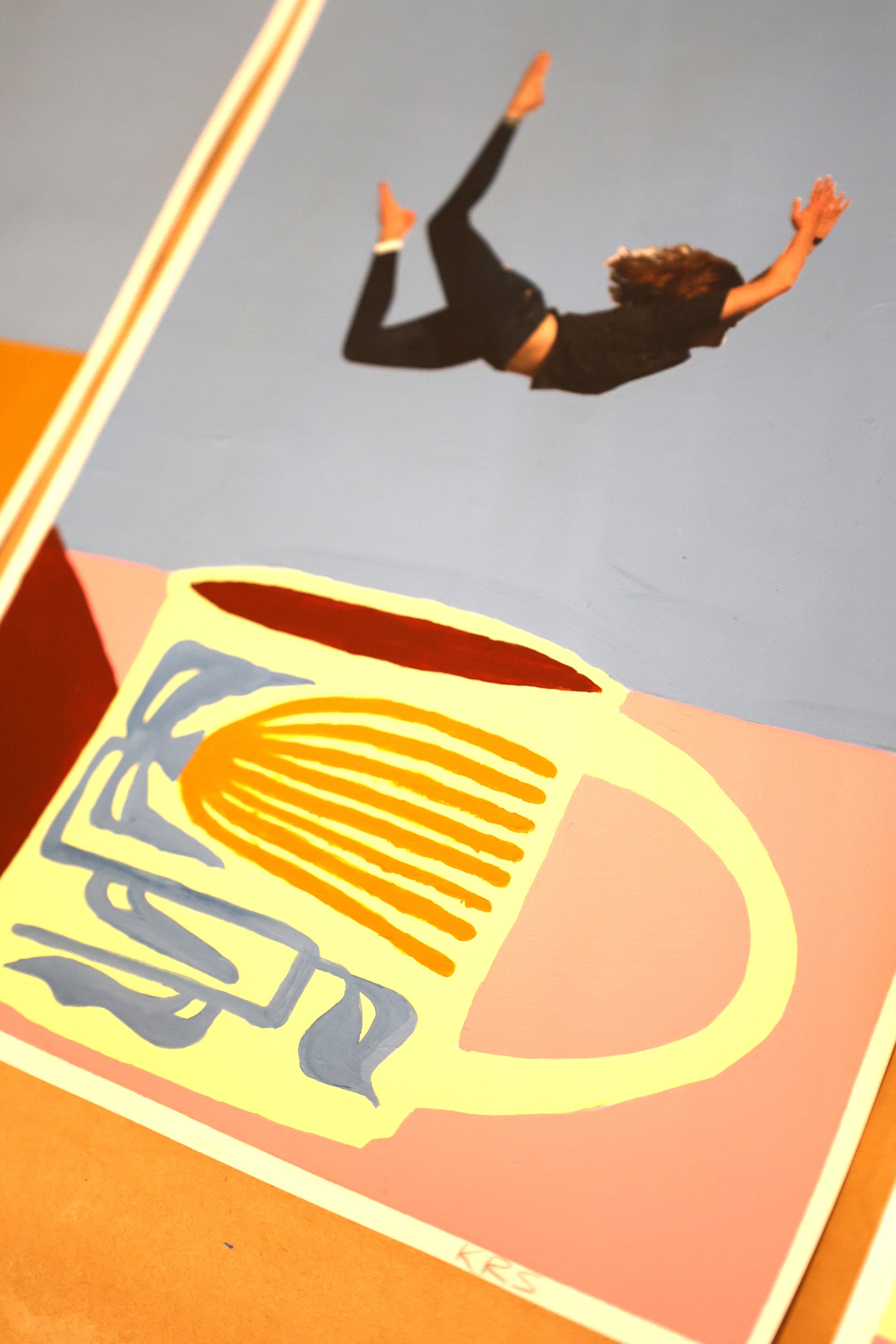 A big yellow mug with painted folk art flower waiting for the splash of joy!