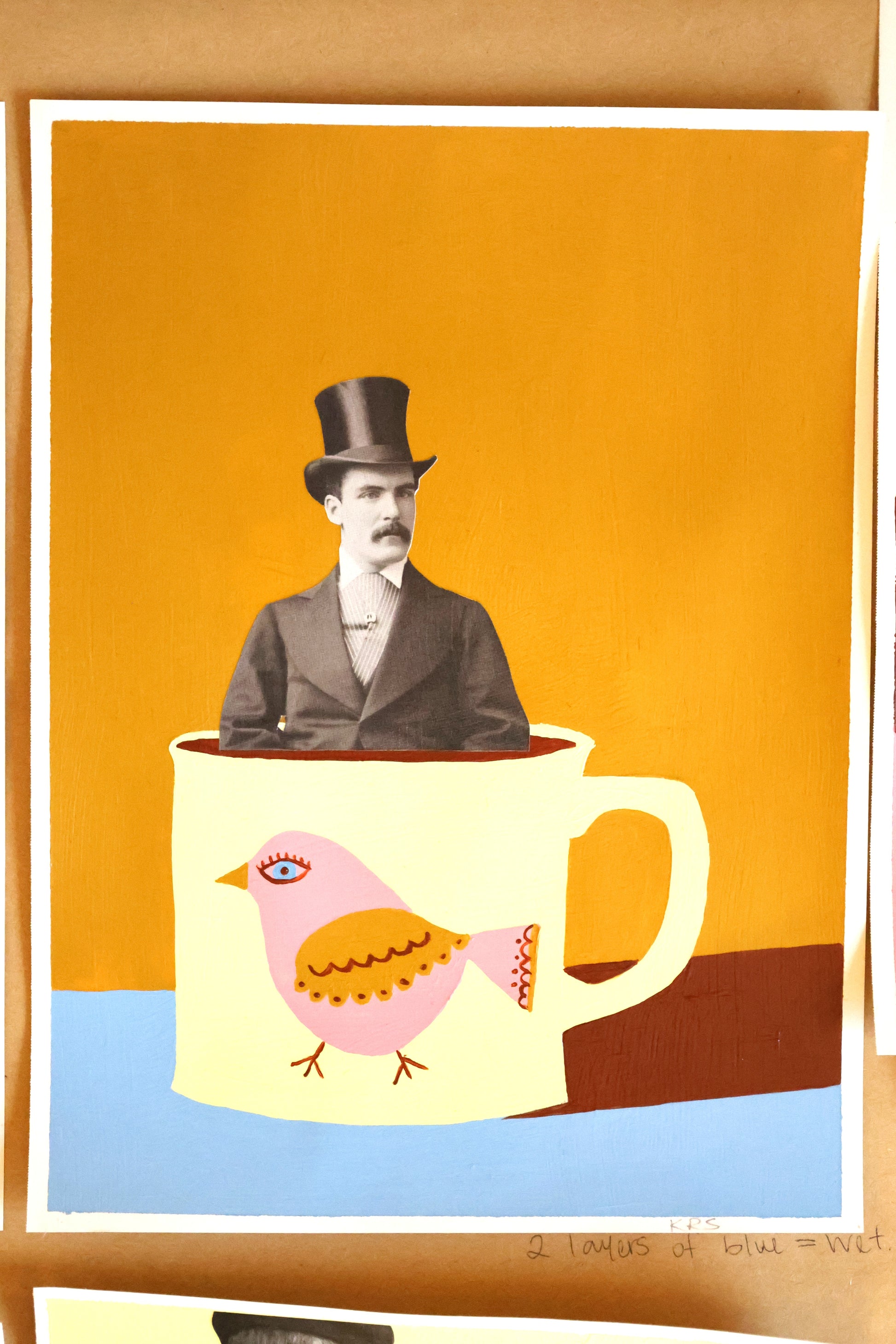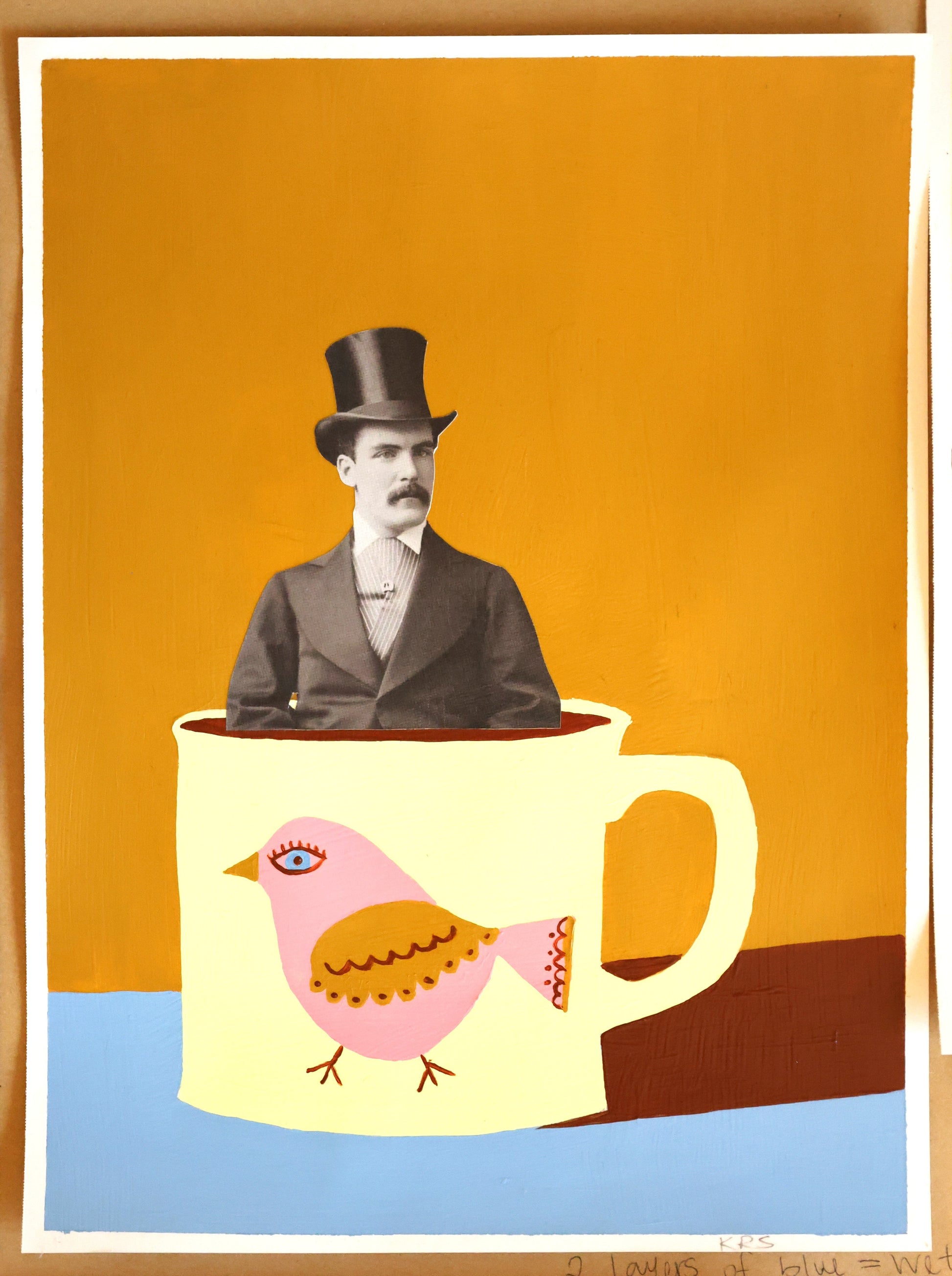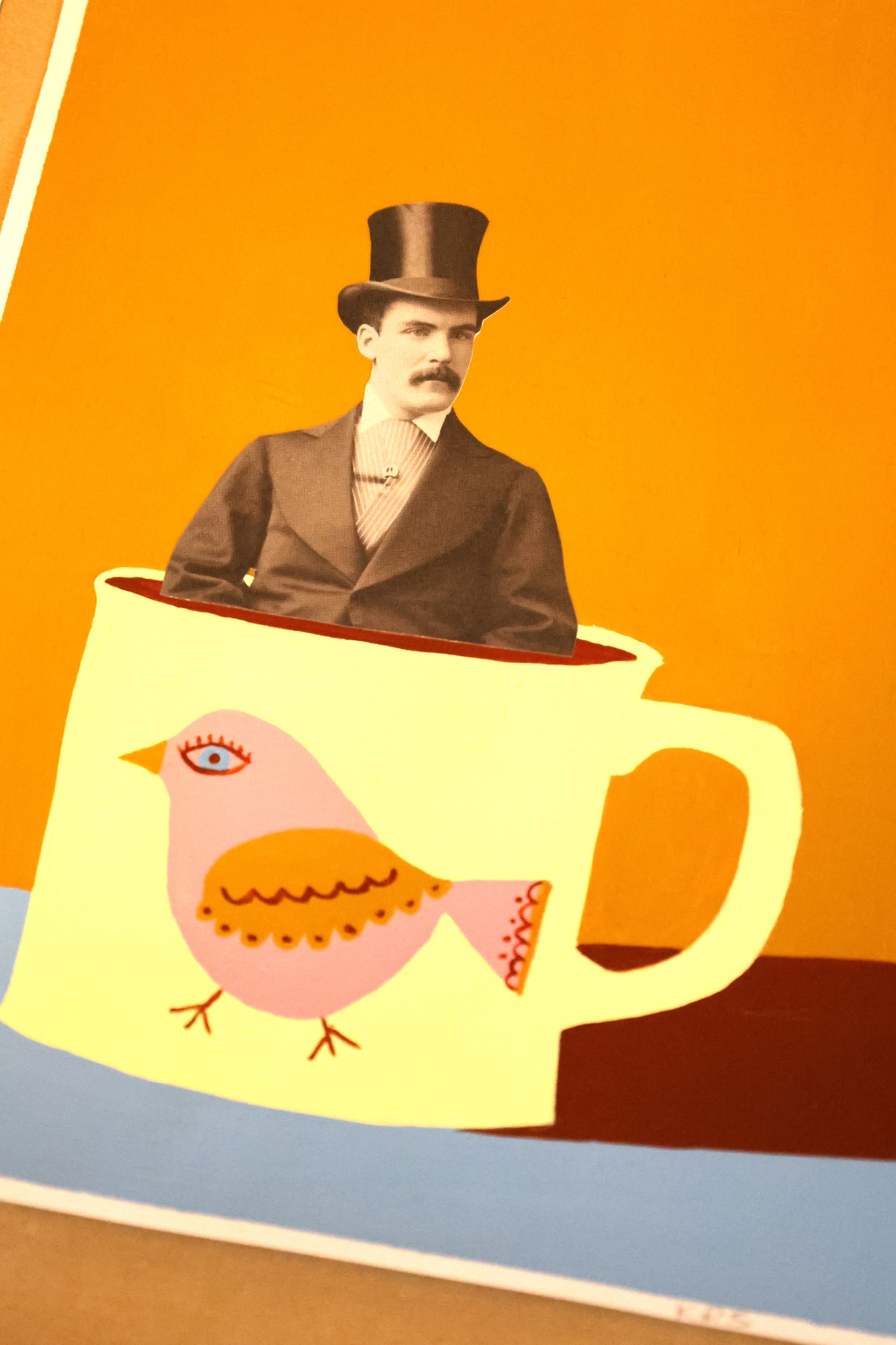 Hopping along is the cutest pink bird, carefree, juxtaposed with a top hatted gentleman just shouted to me PURITY, AT IT'S FINEST!